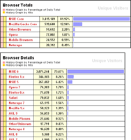 | Browsers Report Here you can see what browsers your visitors are using including all new Mozilla/Gecko browsers and most of the mobile browsers. History Graphs available for all browsers! |