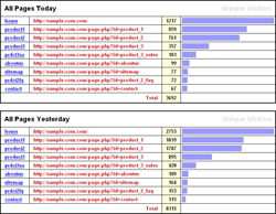| Competitive Section #1 This report shows you the number of unique visitors on all tracked pages for today and yesterday. |