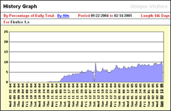 | History Graph Firefox 1.x Here you see an example of our very exclusive History Graphs. This graph shows the history of the Firefox 1.x browser. With our many History Graphs you get an incredible good insight on how your site is doing. History Graphs are available for almost all data. |