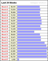 | Last 20 Weeks Report See how many unique visitors you've had for the last 20 weeks. These reports are available for the Last 20 Days, Last 20 Weeks and the Last 20 Months. |