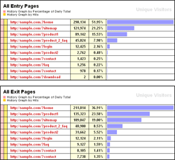 | Path Report #2 Here you can see what pages are most popular for entering your site and what pages they left. History Graphs available for all the data reported! |