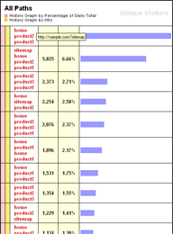 | Path Report #3 Want to know how your visitors travel through your site? We report all path's your visitors followed with full History Graphs for each path! |
