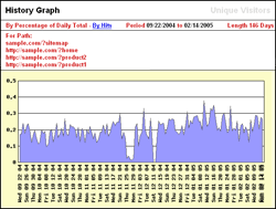 | Path History Graph Another great example of the History Graph feature, you can actually see if a path is traveled more or less over time. Very useful to know if the changes you've made to your site design are successful or not! |