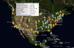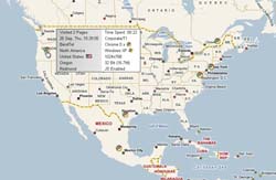 | On the Map Here you see a sample of the mouse over info-box available for all displayed visitors. Clicking the visitor will open up a even more detailed info window. |